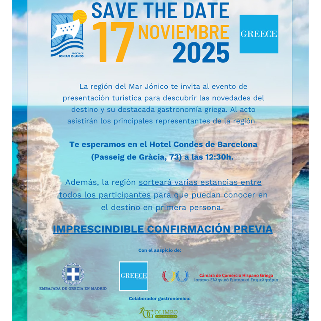 Barcelona, 17 de noviembre de 2025. – En el Hotel Condes de Barcelona, la región del mar Jónico se presentó en la capital catalana con un evento que superó todas las expectativas: aforo completo de profesionales del sector, un ambiente vibrante y una sensación unánime entre los asistentes de que se estaba abriendo un nuevo capítulo en la relación turística entre España y Grecia. Un destino que mira de frente al mercado español Respaldado por
