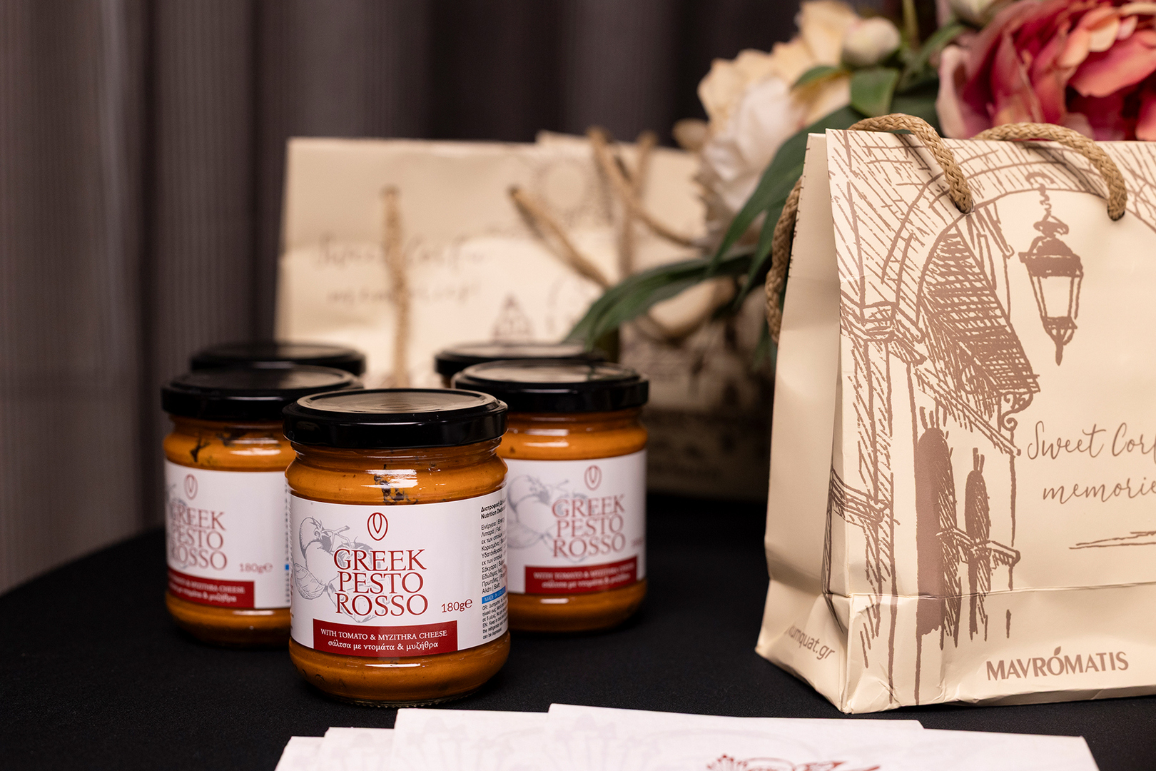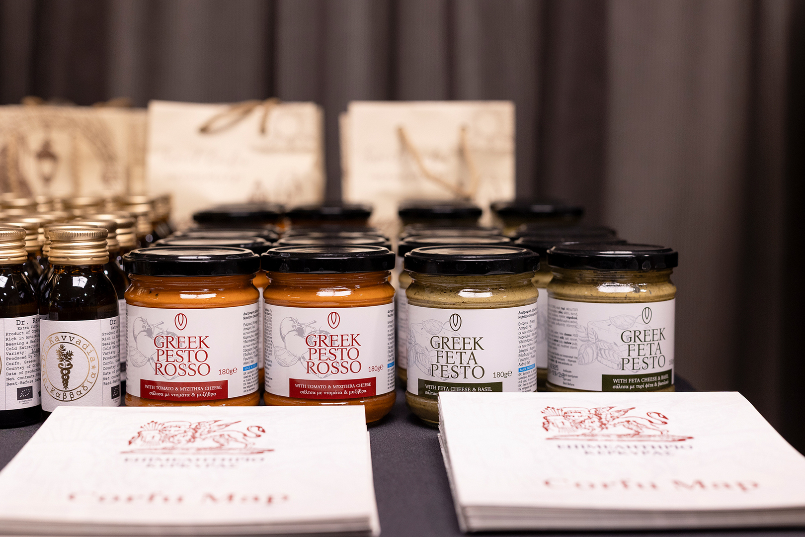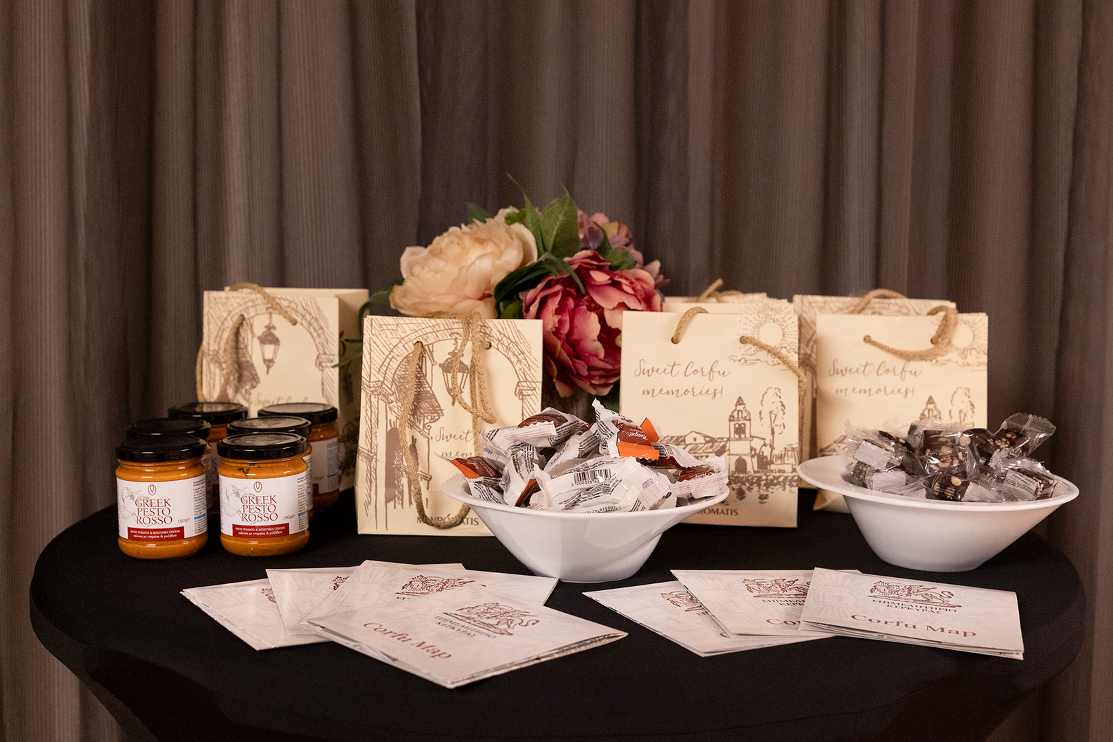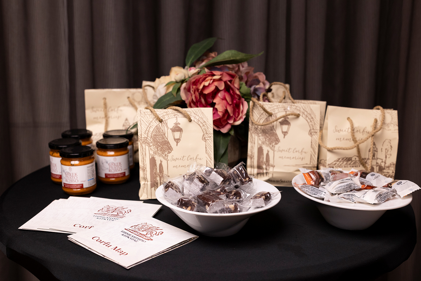 El cierre del evento fue puro Mediterráneo: un cóctel selecto en la terraza del hotel, con productos griegos y españoles cuidadosamente seleccionados por Olimpo Gourmet, conversación fluida entre profesionales y esa sensación tan propia del sur de Europa de que los mejores acuerdos se fraguan alrededor de una mesa. La Cámara de Comercio de Corfú, además, quiso dejar un recuerdo tangible: una cuidada selección de productos típicos de varios productores locales que los asistentes se llevaron como regalo. Más que un evento, un posicionamiento estratégico.